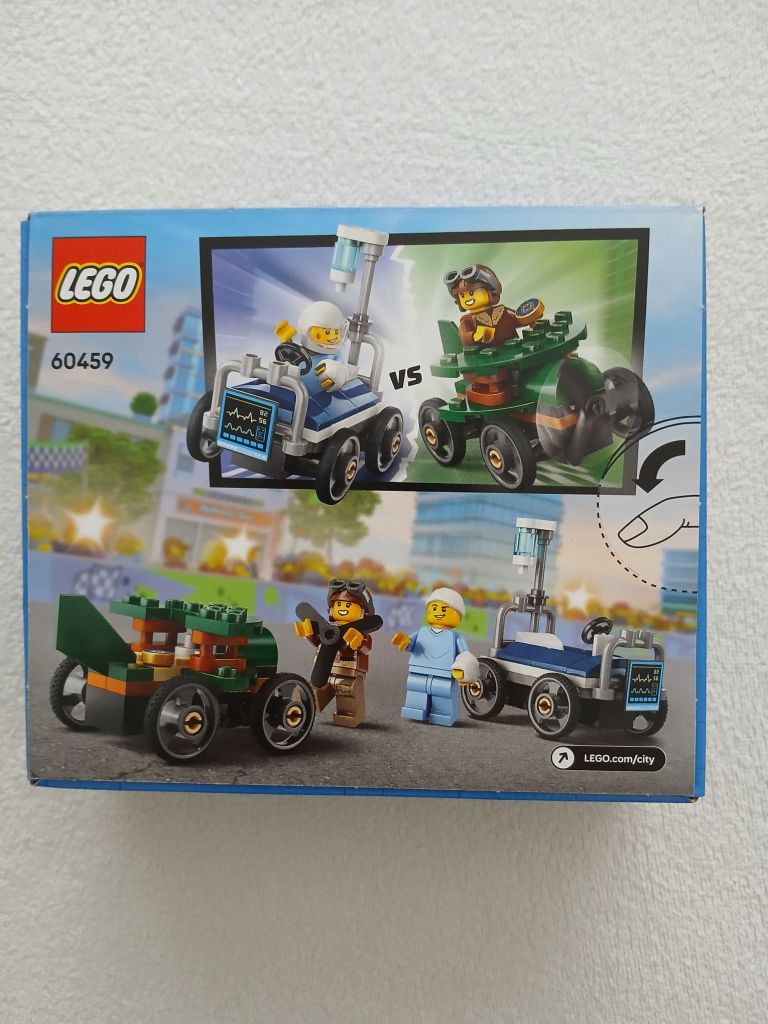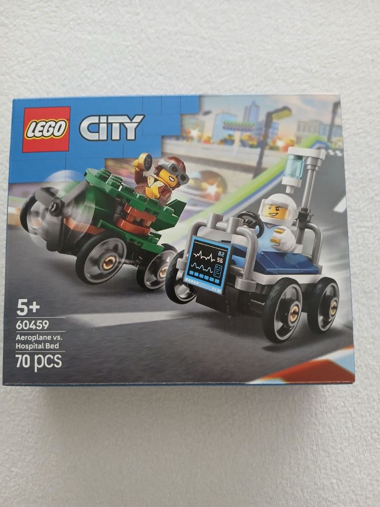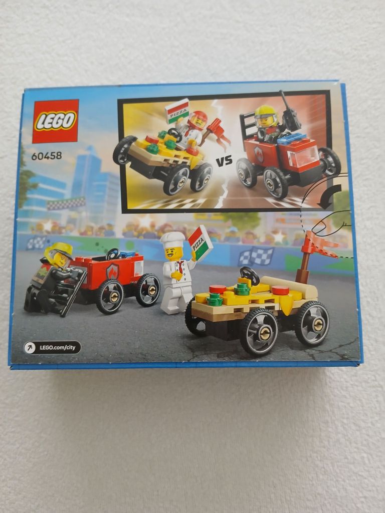 Pizza VS firetruck raceSet nr 60458 prijs 8,-Aeroplane VS hospital bed raceSet nr 60459 prijs 8,-BURGER VAN Lego set nr 60404 Prijs 13,95JUNGLE Explore ATVLego set nr 60424 prijs 15,95Lego F1 pit stop met pit crew met ferrari carSet 60443 pcs 332 voor 25,95